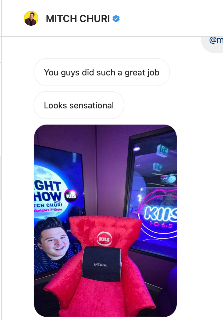 We were approched by Kiis FM to custom make a chair for The Night Show with Mitch Churi for his co-host seat competiton.